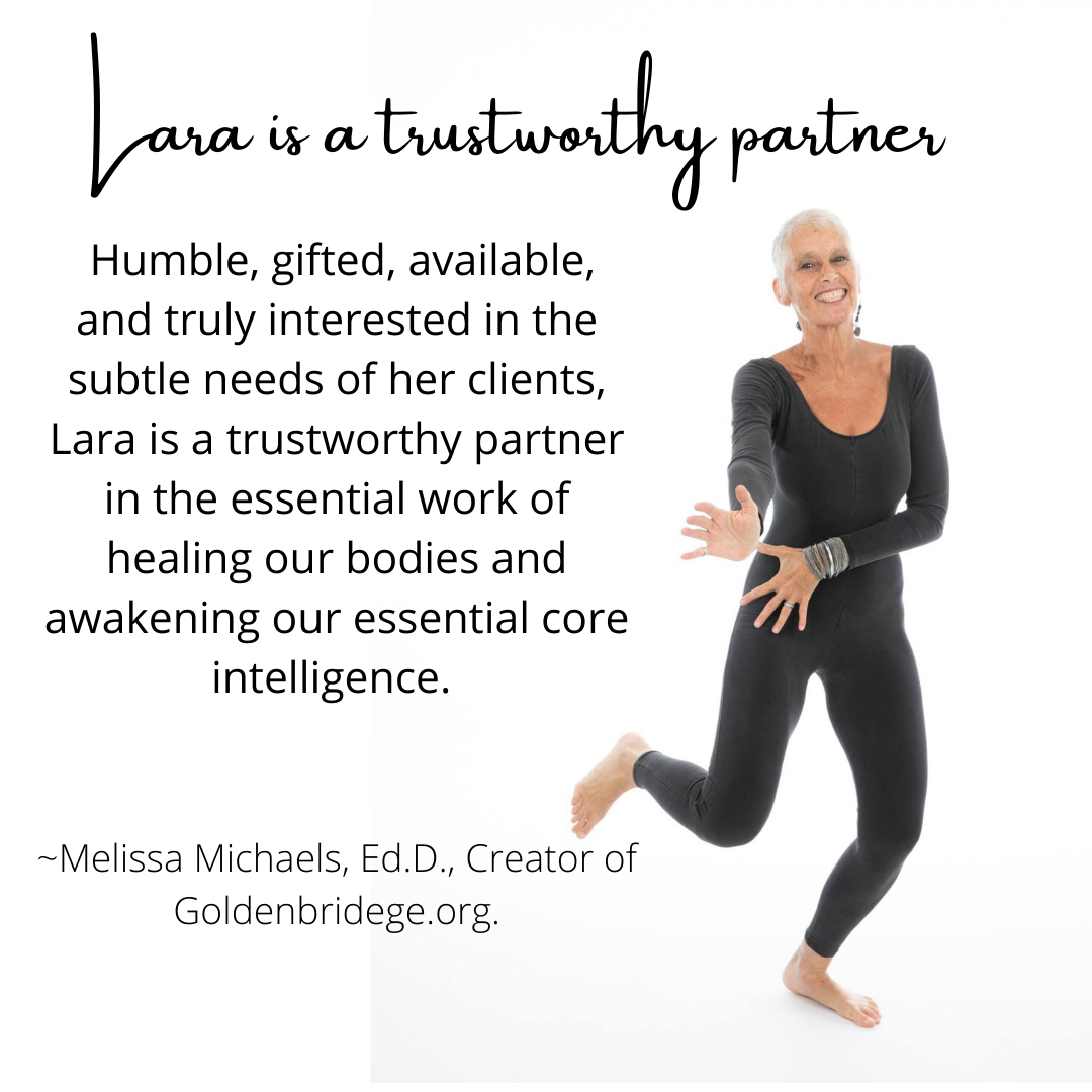 Through Lara’s uniquely attuned embodiment, you’ll be guided to: